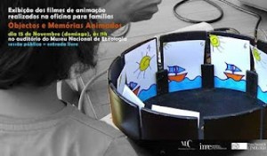 A oficina Objectos e memórias animados decorreu no Museu Nacional de Etnologia, nos fins-de-semana 26 e 27 de Setembro e 10 e 11 de Outubro. A actividade foi conduzida por Fernando Galrito e contou com a participação das famílias que aceitaram o convite do Serviço Educativo para passar as manhãs connosco. Ao longo de 4 sessões os adultos e as crianças conheceram e experimentaram técnicas do cinema de animação, tendo igualmente visitado e animado as colecções das Galerias da Vida Rural e das Galerias da Amazónia.