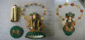 Figura em barro AR.027 antes e depois do tratamento de conservação e restauro