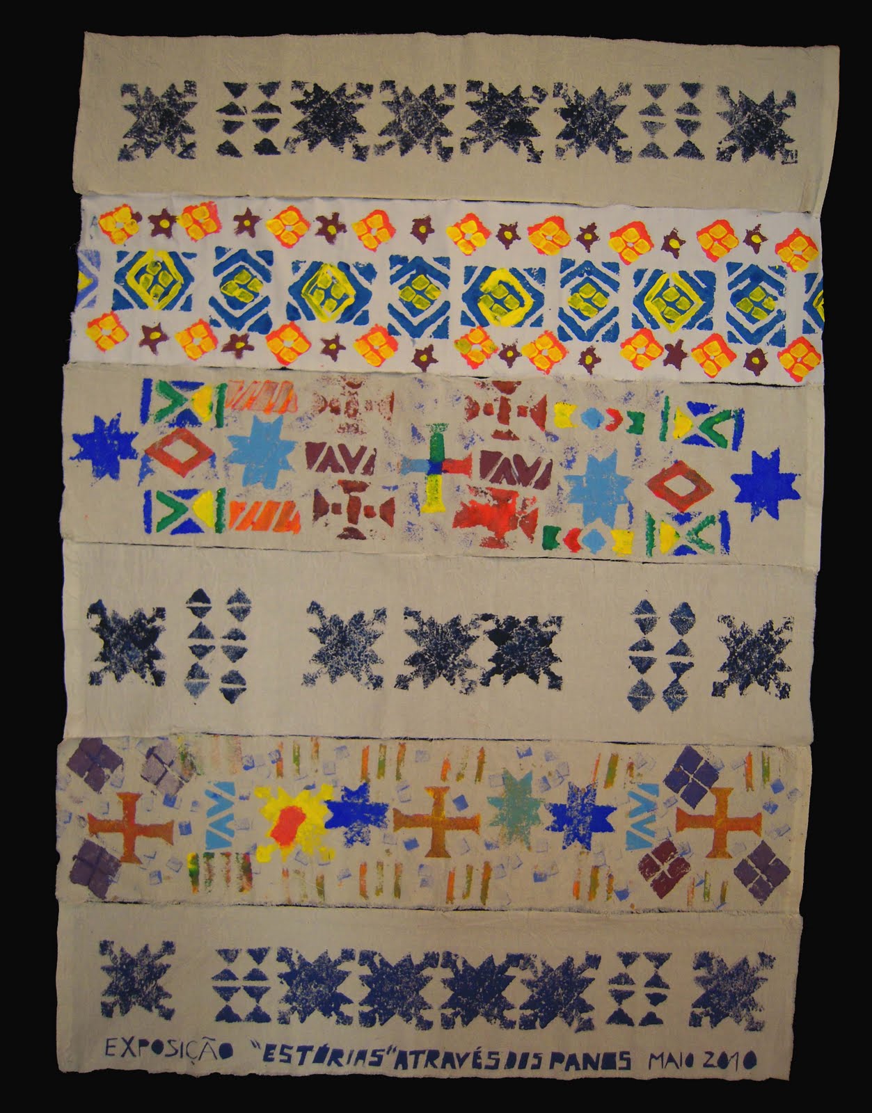 Este pano é o resultado do atelier realizado com crianças e adultos sobre panaria de Cabo Verde e da Guiné Bissau. Este atelier teve lugar na Biblioteca Municipal Fernando Piteira Santos nos passados dias 22 e 29 de Maio e foi coordenado por Manuela Jardim.