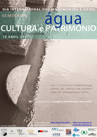 Seminário "Água, Cultura e Património", dia 18 de Abril, no MNE Posted on Abril 12, 2011 by mnetnologia Na próxima segunda-feira, dia 18 de Abril de 2011, vai decorrer no auditório do MNE um seminário sobre o tema: “Água, Cultura e Património”. Mais informações em: http://icomos.fa.utl.pt/ ou http://www.igespar.pt/ Entrada livre, mediante inscrição por e-mail dirigido a: mramalho@igespar.pt Partilhar | Share this: Clique para partilhar no Facebook (Abre numa nova janela) Facebook Click to share on X (Abre numa nova janela) X Carregue aqui para enviar por email a um amigo (Abre numa nova janela) E-mail Gosto Carregando... Relacionado