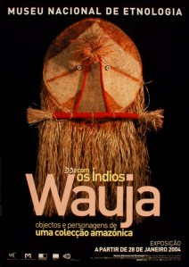 Hoje apresentamos o cartaz da exposição “Com os Índios Wauja”, que inaugurou a 28 de Janeiro de 2004. Neste figura a máscara BB.729. O projecto de constituição de uma colecção etnográfica entre os índios Wauja, um povo de língua Arawak, estabelecido unicamente nas proximidades da margem direita do rio Batovi, na região ocidental da bacia dos formadores do rio Xingu, no Estado de Mato Grosso, na Amazónia Meridional, foi desencadeado pelo MNE, conduzido no terreno pelo antropólogo Aristóteles Barcelos Neto e apoiado financeiramente pela Comissão Nacional para a Comemoração dos Descobrimentos Portugueses, durante o ano de 2000. À venda na loja do museu pelo preço de 2€.