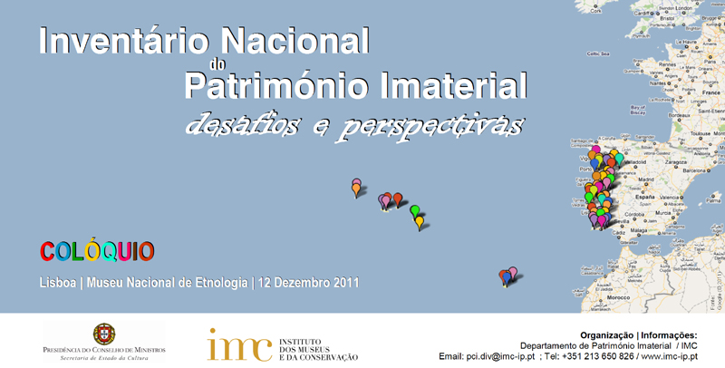 É este o contexto global de realização do Colóquio “Inventário Nacional do Património Imaterial: Desafios e Perspectivas”, que pretende constituir-se como lugar de reflexão sobre as potencialidades e os desafios que se colocam à salvaguarda do PCI em Portugal no âmbito da recente implementação do Inventário Nacional do Património Cultural Imaterial.