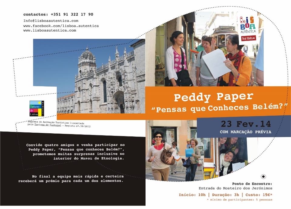 O Peddy-Paper da Lisboa Autêntica, “Pensas que conheces Belém?” vai passar pelo MNE, no Domingo, dia 23 de Fevereiro! Inscrições pelo +351 913221790 ou pelo mail info@lisboaautentica.com No final, a equipa mais rápida receberá um prémio para cada um dos elementos! Convide quatro amigos e venha participar!