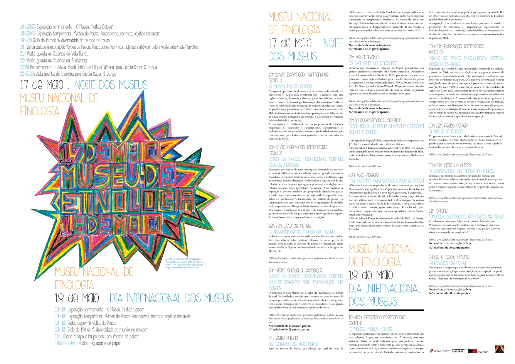 Esta é a nossa programação para a noite de 17 de Maio e para o dia seguinte, dia 18, Dia Internacional dos Museus!