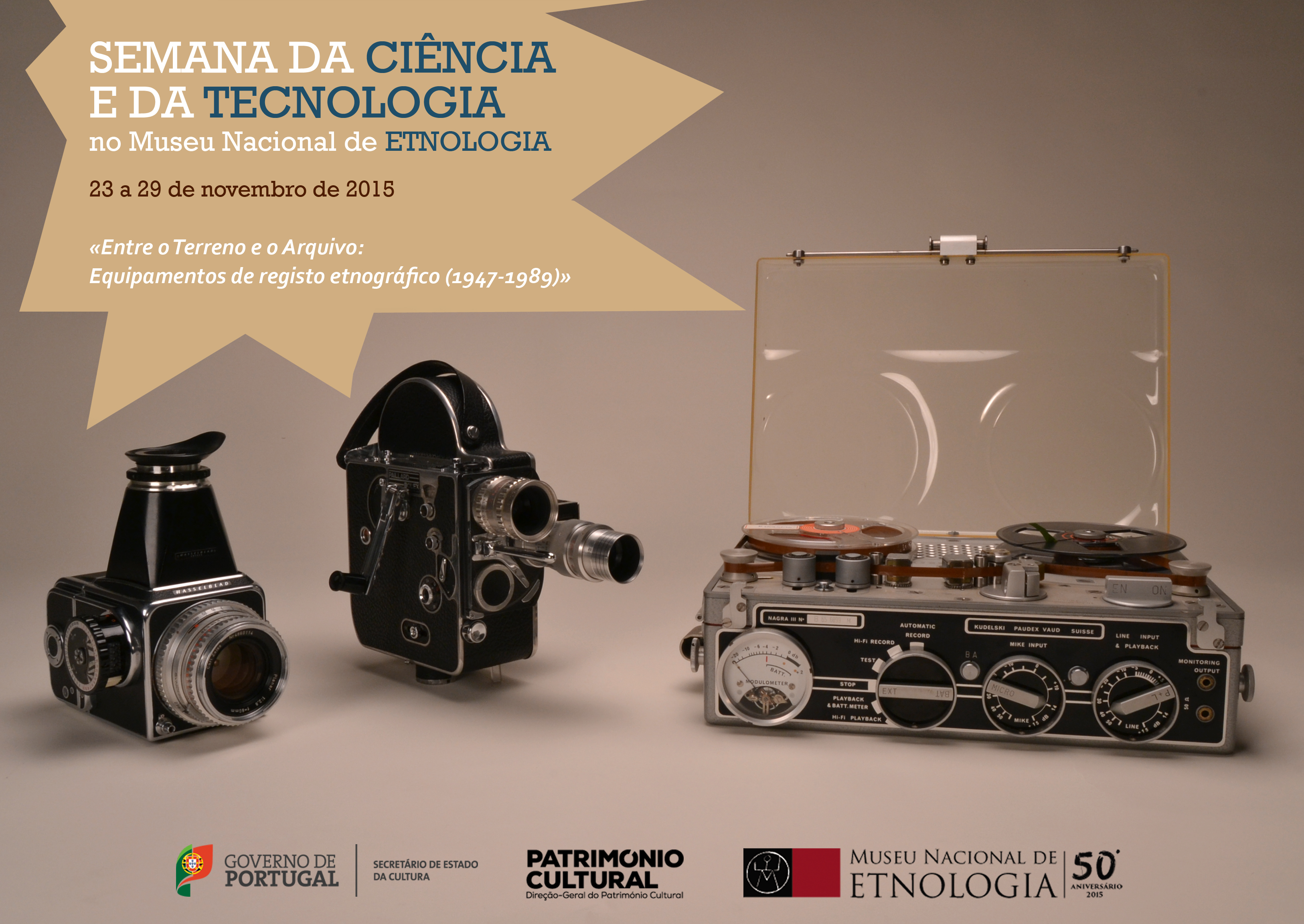 Mostra de uma seleção dos equipamentos de registo de som e imagem utilizados pela equipa fundadora do Museu Nacional de Etnologia nas pesquisas realizadas no terreno entre as décadas de 1940 e 1980, em Portugal e África.