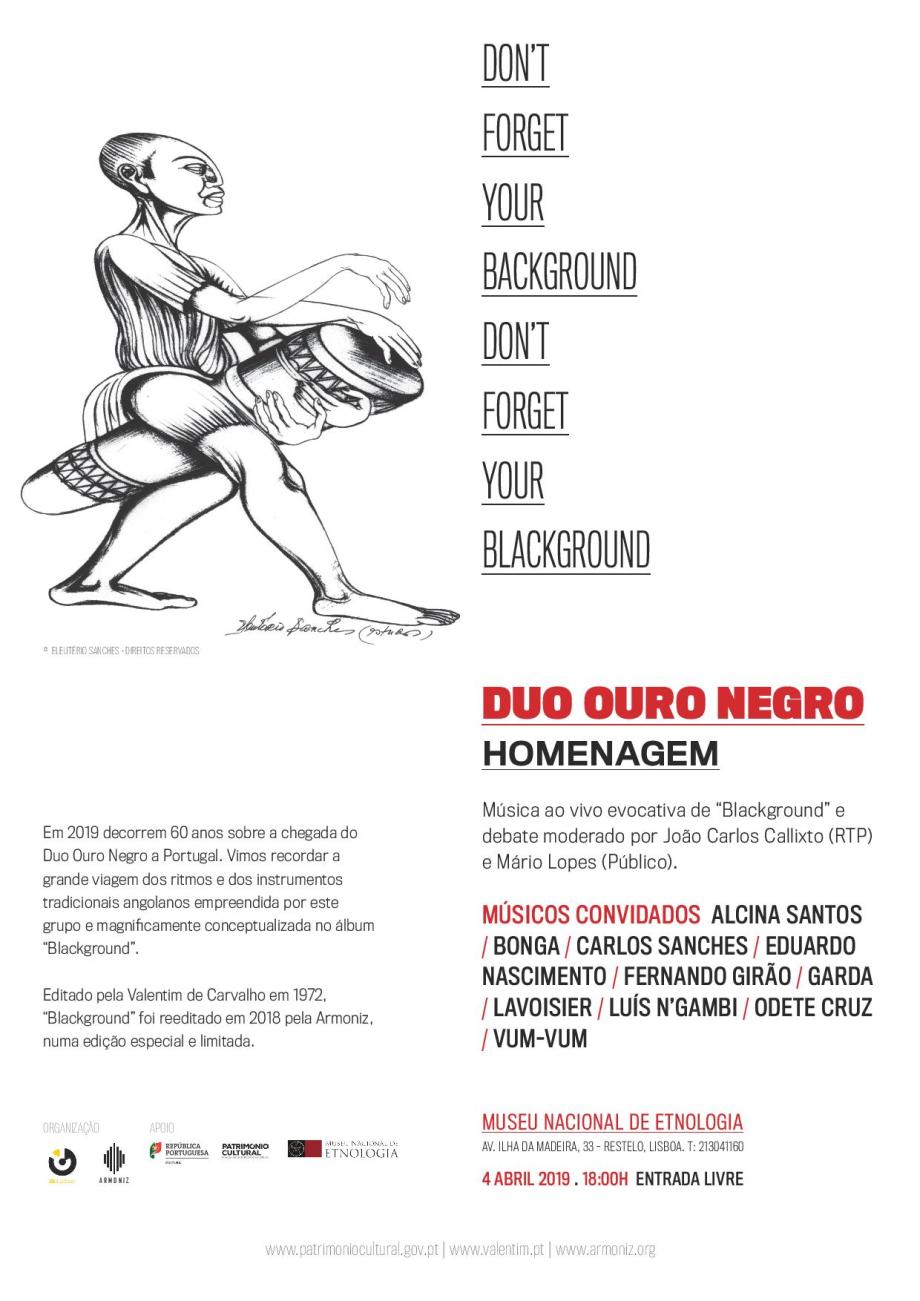Homenagem ao Duo Ouro Negro | 4 de abril | 18h00 Imagem | Posted on Abril 2, 2019 by mnetnologia Partilhar | Share this: Clique para partilhar no Facebook (Abre numa nova janela) Facebook Click to share on X (Abre numa nova janela) X Carregue aqui para enviar por email a um amigo (Abre numa nova janela) E-mail Gosto Carregando... Relacionado