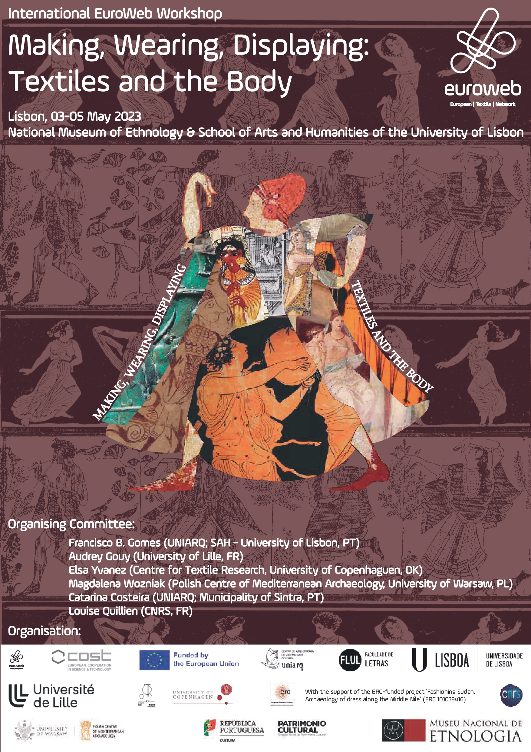O Workshop Internacional EuroWeb «Making, Wearing, Displaying: Textiles and the Body in Pre-Modern Societies» procura explorar diversas experiências corporais dos têxteis e o seu significado sociocultural através de um prisma interdisciplinar. Pretendemos reunir perspetivas históricas, arqueológicas, antropológicas e bioantropológicas para explorar tópicos comuns de interesse e ferramentas teóricas e metodológicas partilhadas que possam implementar-se na investigação presente e futura sobre a relação entre os têxteis e o corpo.