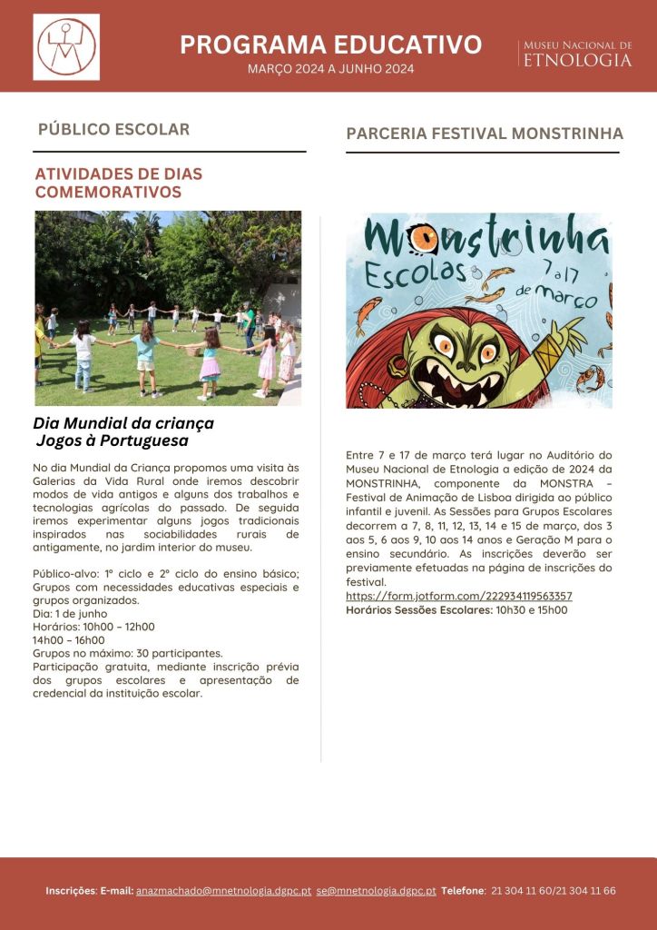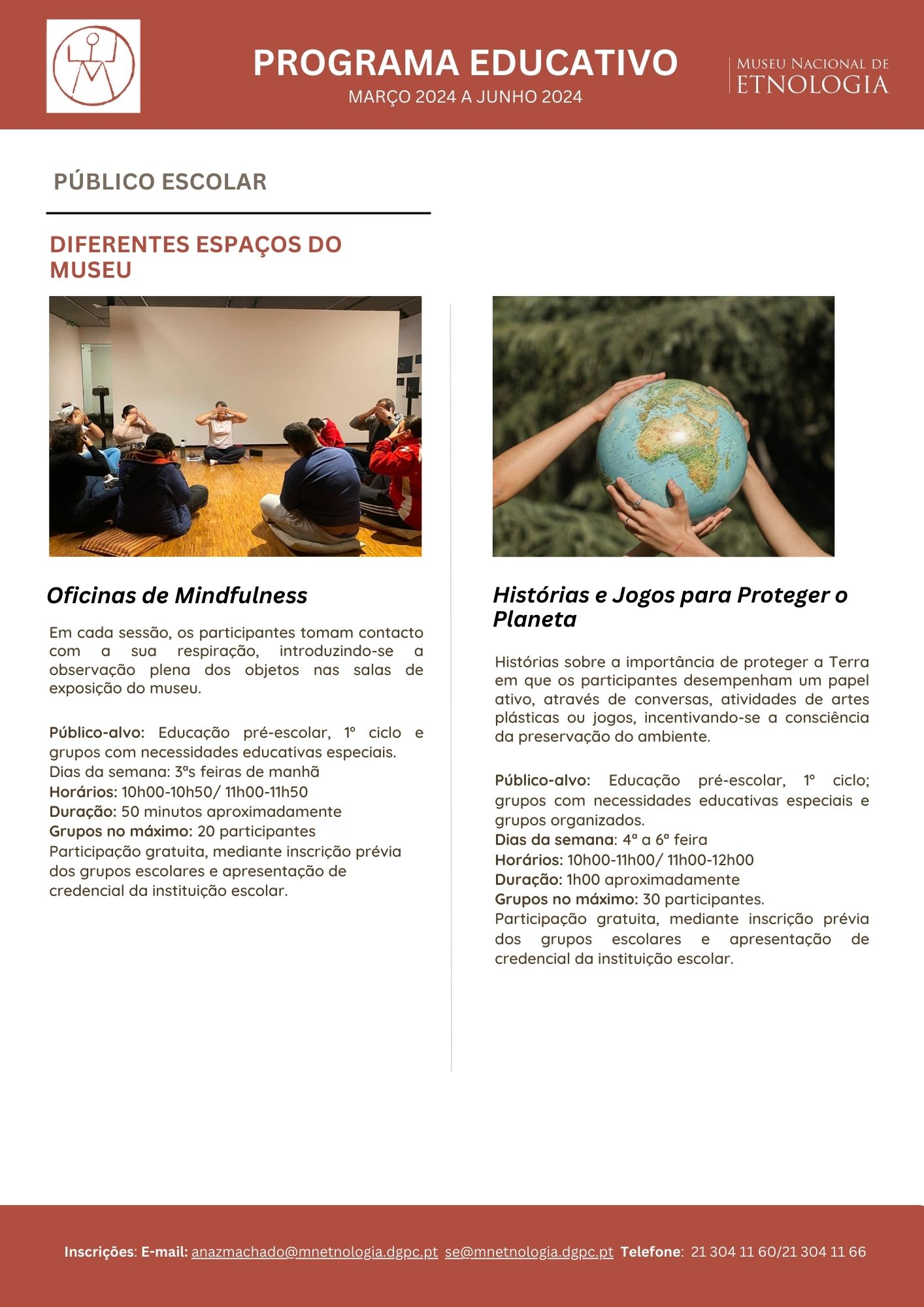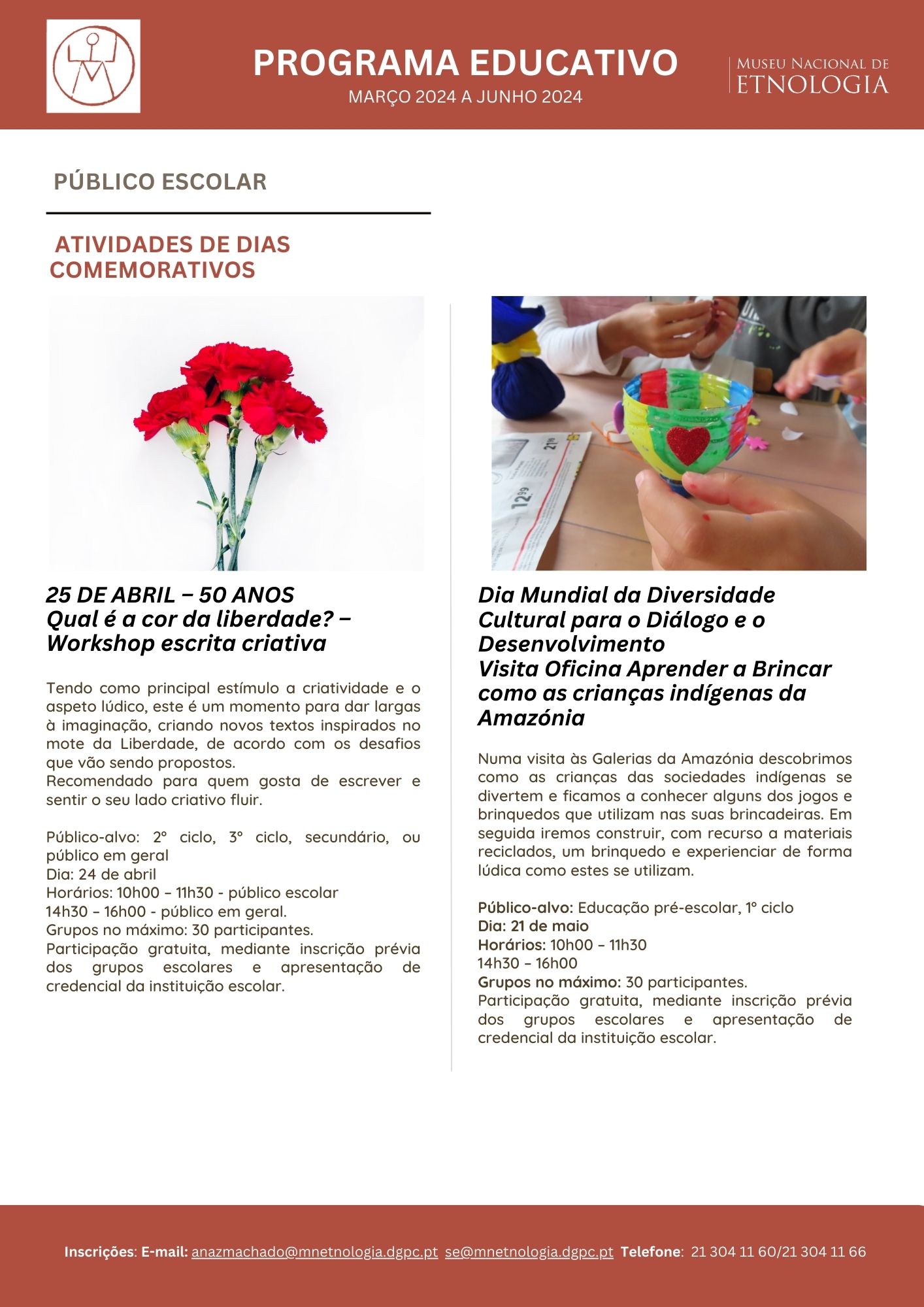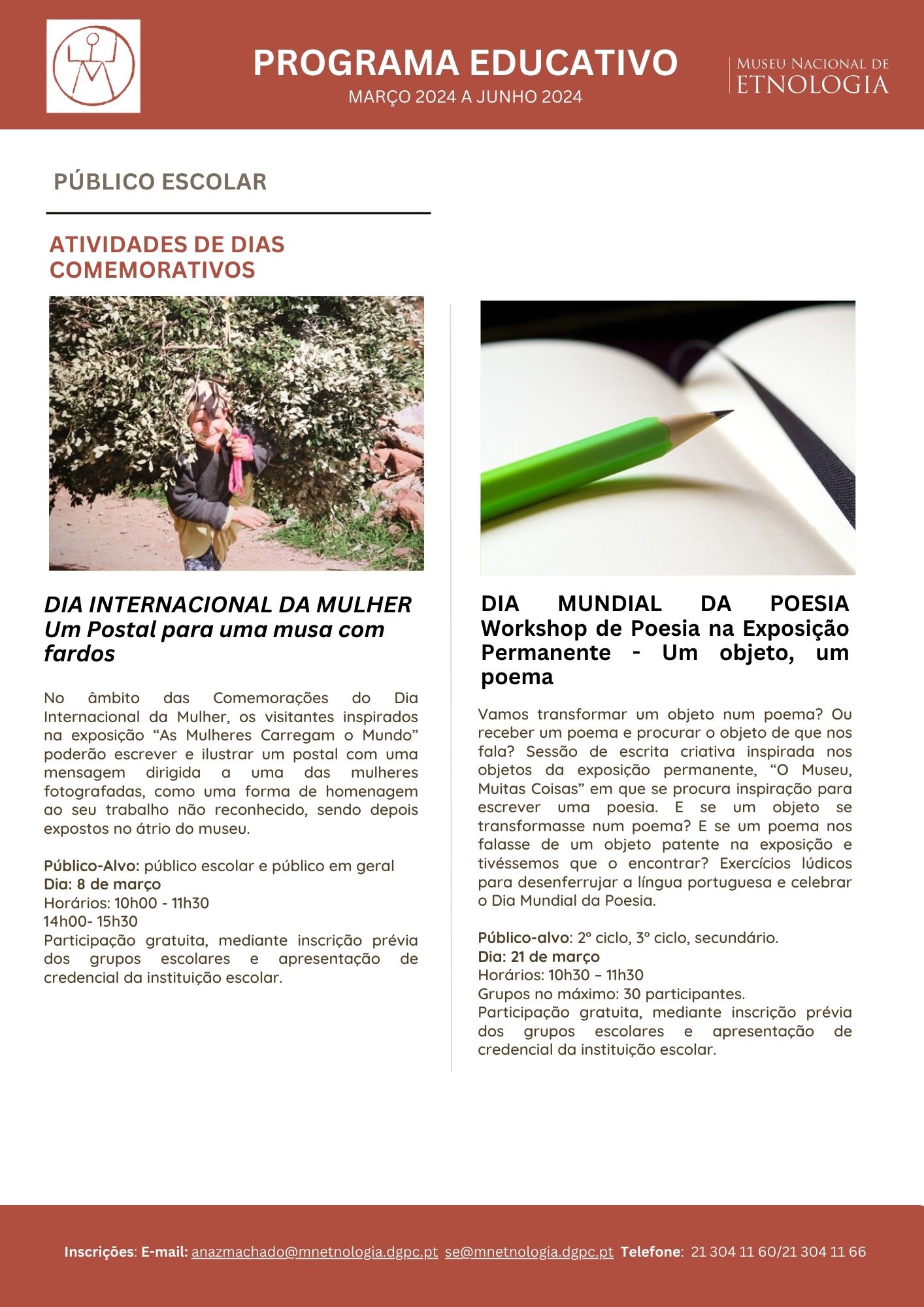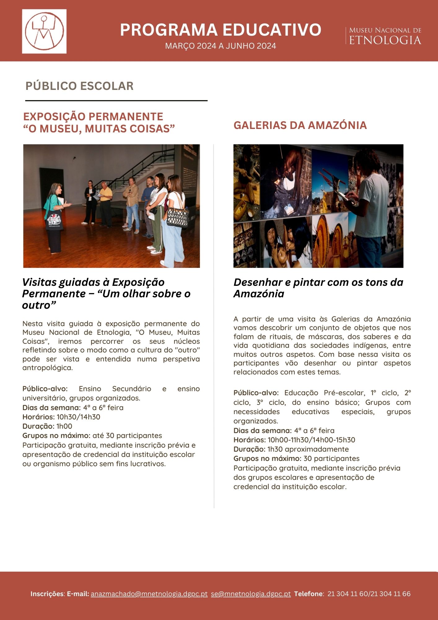 Programa Educativo | março a junho 2024 Posted on Janeiro 31, 2024 by mnetnologia Partilhar | Share this: Clique para partilhar no Facebook (Abre numa nova janela) Facebook Click to share on X (Abre numa nova janela) X Carregue aqui para enviar por email a um amigo (Abre numa nova janela) E-mail Gosto Carregando... Relacionado