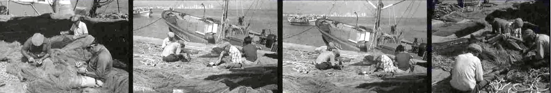 Vila Real de Santo António. O coser das redes no cais, 1978.