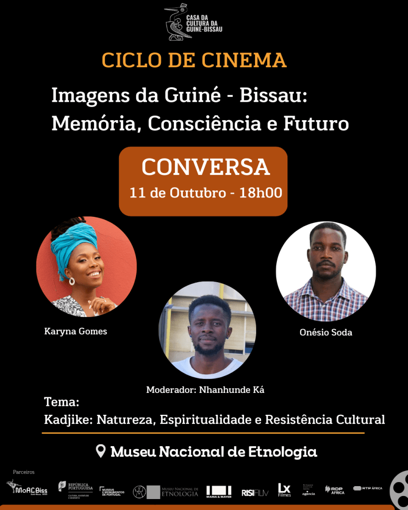 No final da projeção terá lugar uma conversa com o tema “Kadjike: Natureza, Espiritualidade e Resistência Cultural” com Karyna Gomes, Onésio Soda, com moderação de Nhanhunde Ká.
