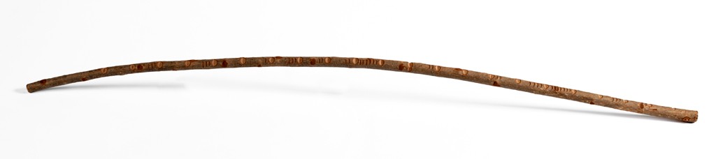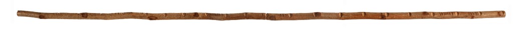 É uma vara entalhada demarcando os espaços que correspondem a cada casa. Em relação à margem direita, ou seja, entre a extremidade mais grossa e o corte mais profundo que representa o rio, está marcado o número exato das casas; já na parte correspondente à margem esquerda o mordomo continuou os entalhes, como que distraído e entretido a fazê-los, para além do número de casas efetivamente existentes. Fez depois uma marca lateral com a navalha para indicar para si mesmo o fim da contagem das casas.
