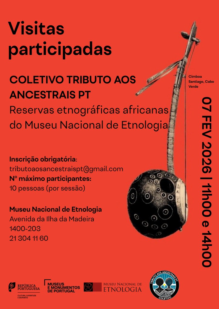 O Coletivo Tributo aos Ancestrais PT, em parceria com o Museu Nacional de Etnologia (MNE), em Belém, Lisboa, tem a honra de convidá-lo(a) a participar nas visitas participadas às reservas etnográficas africanas do Museu, cujas primeiras sessões terão lugar no dia 10 de janeiro de 2026 (esgotadas). As próximas sessões terão lugar no dia 7 de fevereiro, às 11h00 e 14h00, tendo uma duração aproximada de uma hora e trinta minutos.